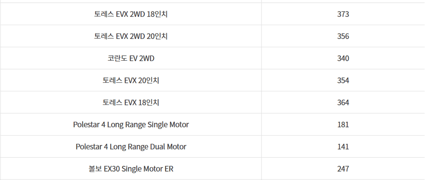 가장 큰 기준은 바로 "환경부의 전기차 보급대상 평가 항목"과 "에너지 효율, 1회 충전 주행거리"입니다.