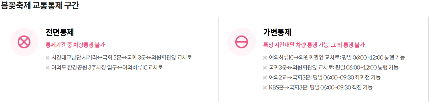 - 🛑 교통통제: 4.6(일) 12:00 ~ 4.13(일) 22:00 (벚꽃길 일대)