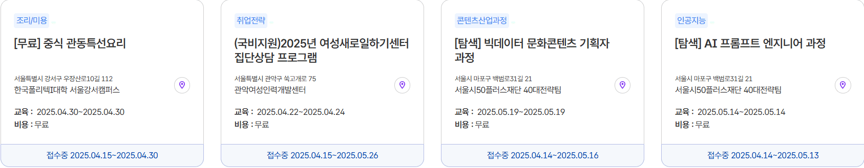 원칙적으로 서울시민 또는 서울시 소재 사업장 근무자를 대상으로 하지만, 일부 과정은 외부 거주자에게도 오픈될 수 있습니다. 공지사항을 참고하세요.
