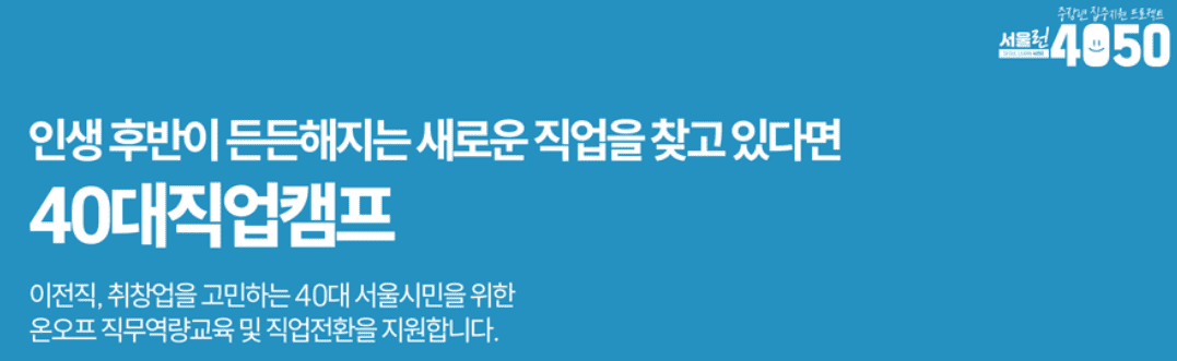 서울런4050은 서울시 평생교육진흥원이 주관하는 중장년 대상 직업 전환 및 재취업 지원 프로그램입니다. 조기퇴직, 경력 단절, 급격한 산업 변화에 직면한 40~50대를 위해, 온라인과 오프라인 직무교육, 취업컨설팅, 일자리 연계까지 통합 지원합니다. 특히 실무에 바로 활용할 수 있는 직업 역량을 키우고, 미래 불안감을 줄이는 것을 목표로 하고 있습니다.